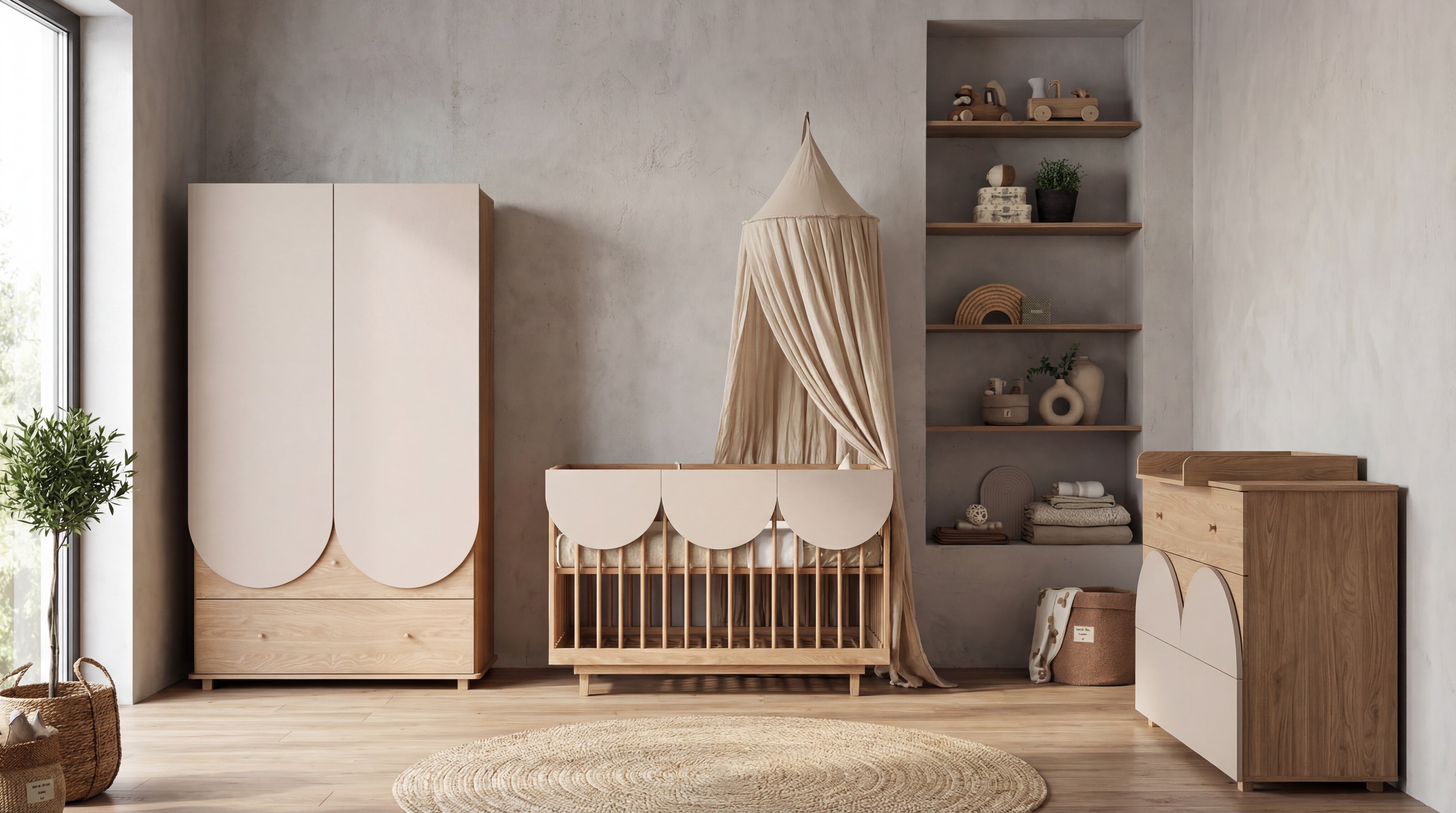 Kolekcja mebli Bloom to kwintesencja nowoczesnego designu, w którym ostre krawędzie ustępują miejsca miękkim, organicznym liniom. To meble stworzone dla rodziców, którzy pragną urządzić pokój dziecka w duchu harmonii, bezpieczeństwa i ponadczasowej elegancji.