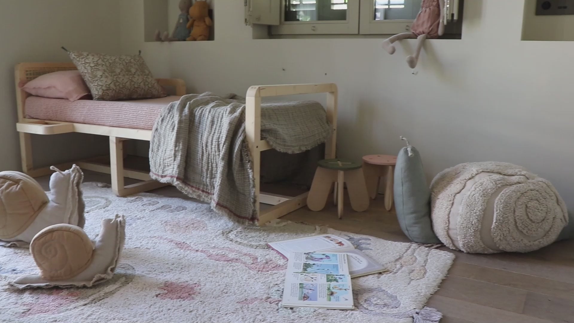 Pastelowa paleta kolorów łączy różne odcienie różu, fioletu, jasnożółtego i zielonego z naturalną niebarwioną bawełnianą bazą. Płócienna podstawa dywanu wykonana jest z pochodzącej z recyklingu bawełny z domieszką przędzy RugCycled®, dzięki czemu produkcja Lorena Canals utrzymana jest w nurcie zero waste.