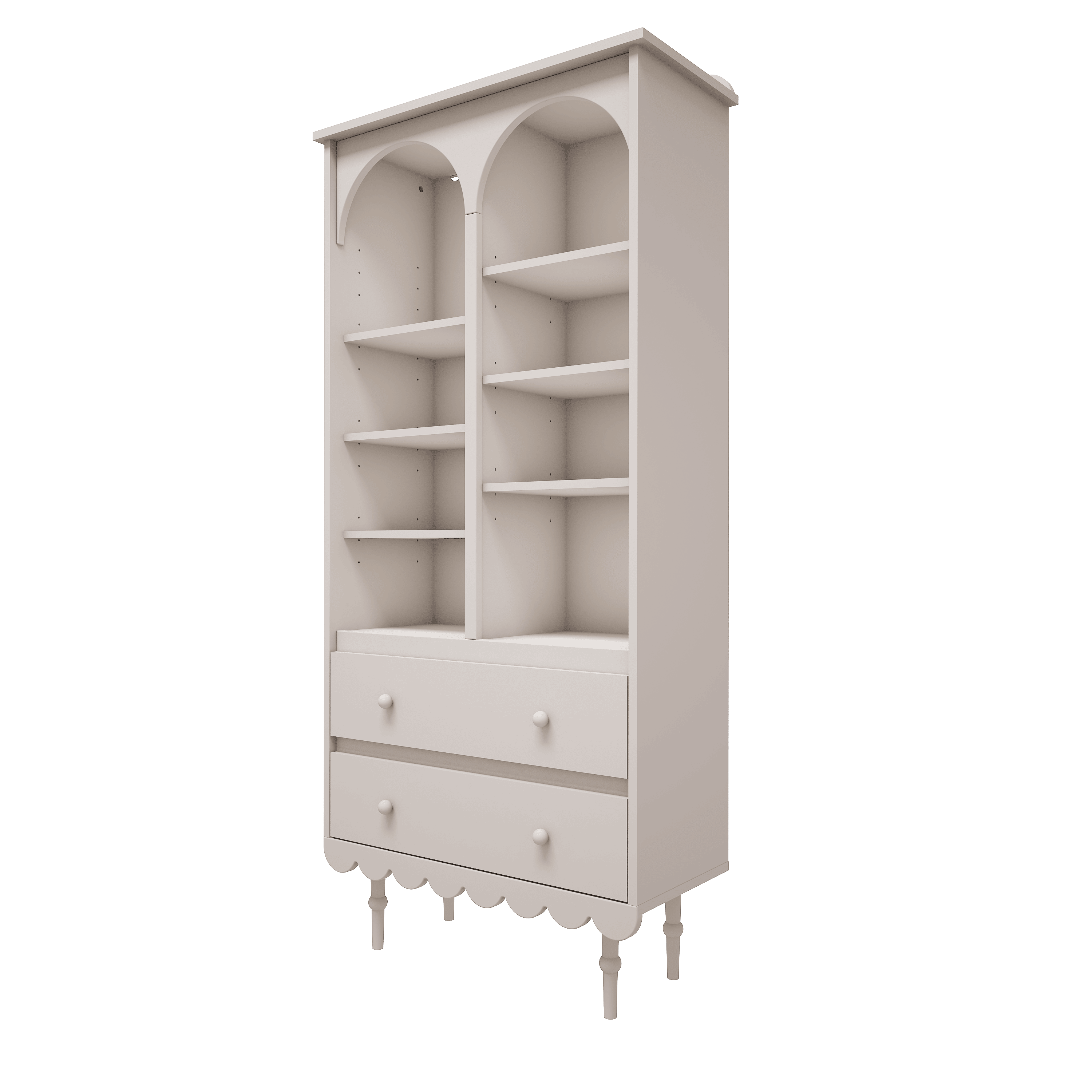 Regał został zaprojektowany z myślą o rodzicach i dzieciach ceniących estetykę oraz praktyczne zastosowanie. Babushka to niezwykle uroczy mebel dziecięcy o wyjątkowym designie. Zdobienia w kształcie falbanki oraz stylowe łuki zachwycają i przyciągają uwagę.