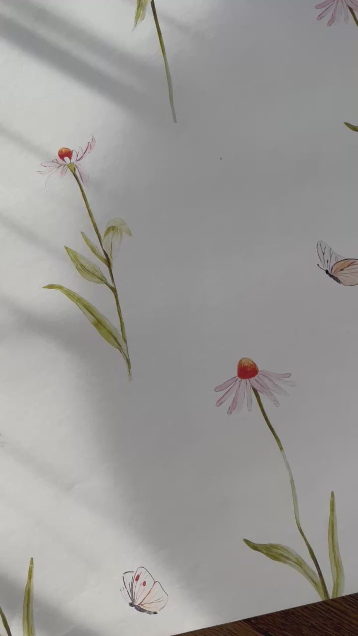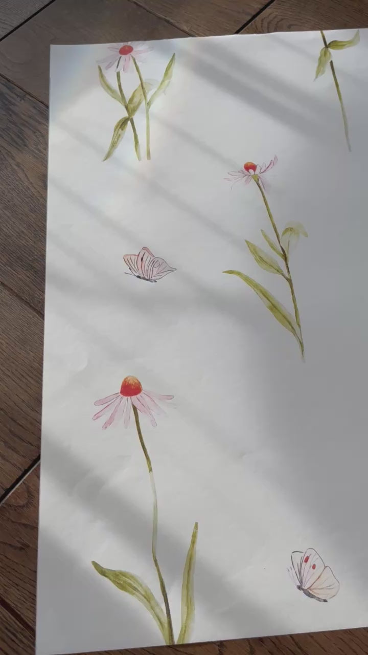 Wyjątkowa tapeta z ręcznie malowanym kwiatkami jeżówki - ma to co, natura oferuje w swej prostocie.